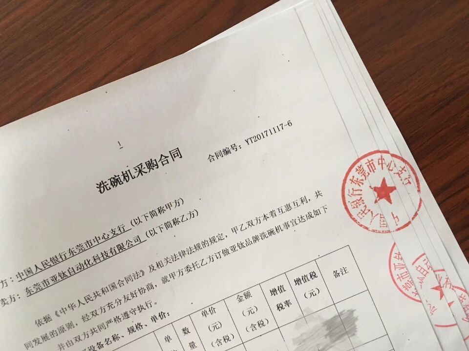 中國人民銀行東莞市中心支行在經過對比國內多家洗碗機品牌中選擇了亞鈦洗碗機,非常感謝中國人民銀行東莞市中心支行對亞鈦的信任與支持。